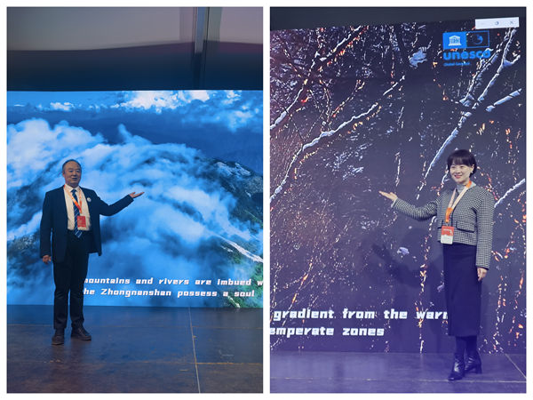 代表团在大会上作专题推介发言,向国际嘉宾生动展示秦岭的地质特色与旅游资源。在“地质公园气候变化与地质灾害防治”分会场,代表团以“构筑韧性社区:秦岭终南山世界地质公园滑坡风险协同治理的实践与探索”为题发表学术演讲,分享了在地质灾害防治领域的先进经验。在“地质公园科普教育、解说与传播”分会场,代表团以“她力量:赋能秦岭终南山世界地质公园的创新与地学叙事”为主题进行汇报,向国际社会传递秦岭在地学传播与可持续发展中的创新理念。此外,代表团还受邀参加地质灾害防治与气候变化工作组讨论,介绍终南山在地质公园建设与管理方面取得的成果。
