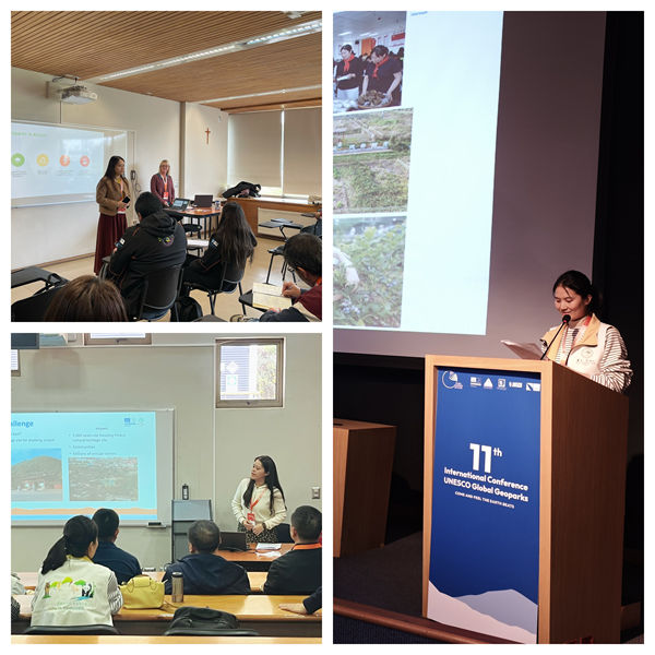 会议期间,代表团还与智利、法国、德国、卢森堡、芬兰、新西兰、厄瓜多尔等多国地质公园代表开展深入交流,围绕地质灾害防治、地学科普、社区参与可持续发展等议题分享经验,并与联合国教科文组织地学旅游项目组、芬兰洛夸世界地质公园、新西兰怀塔基白石地质公园、智利库塔库拉地质公园等机构就科普教育、研学旅游手册编写等合作内容进行了深入探讨。